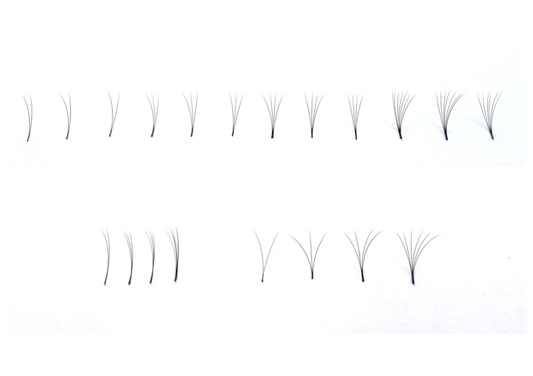 Пучки должны быть симметрично распушенны. Основание ресниц должно быть на одной линии